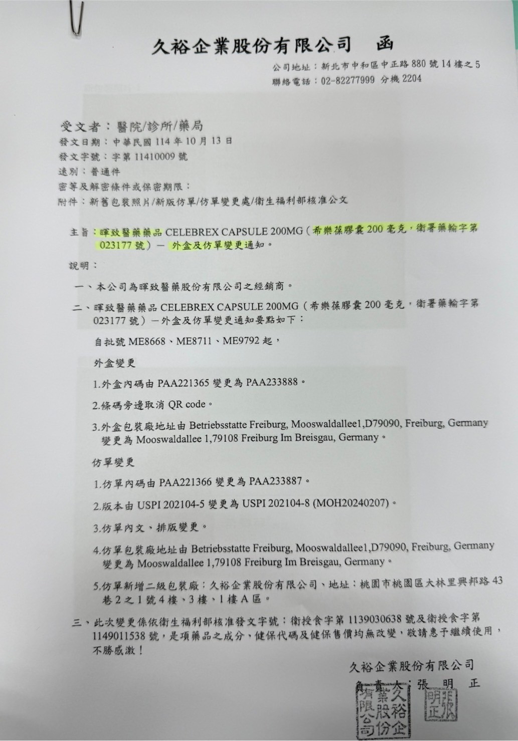 【包裝外觀變更公告】 希樂葆膠囊200MG ,外盒及仿單變更