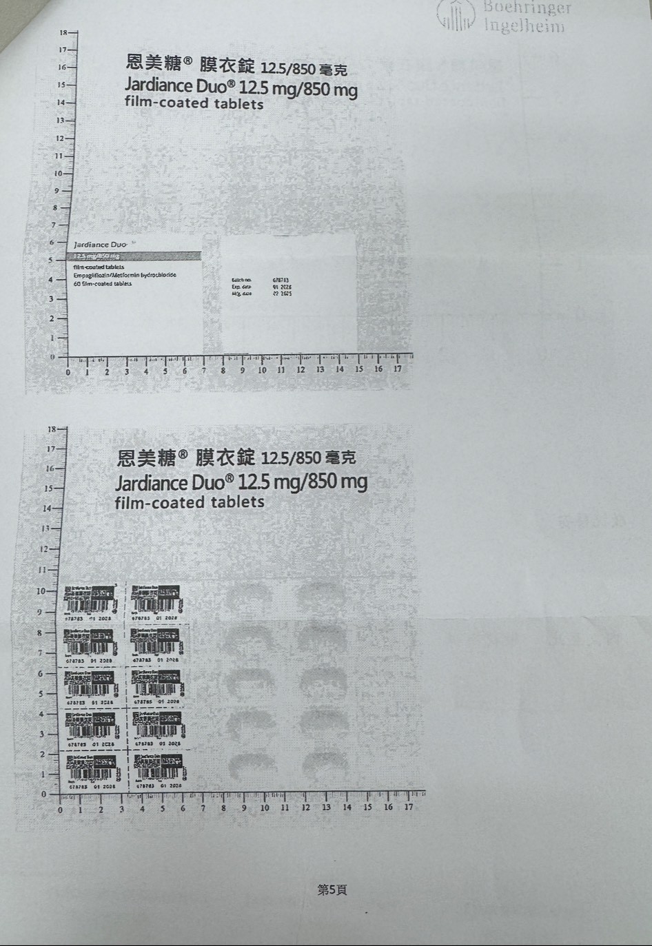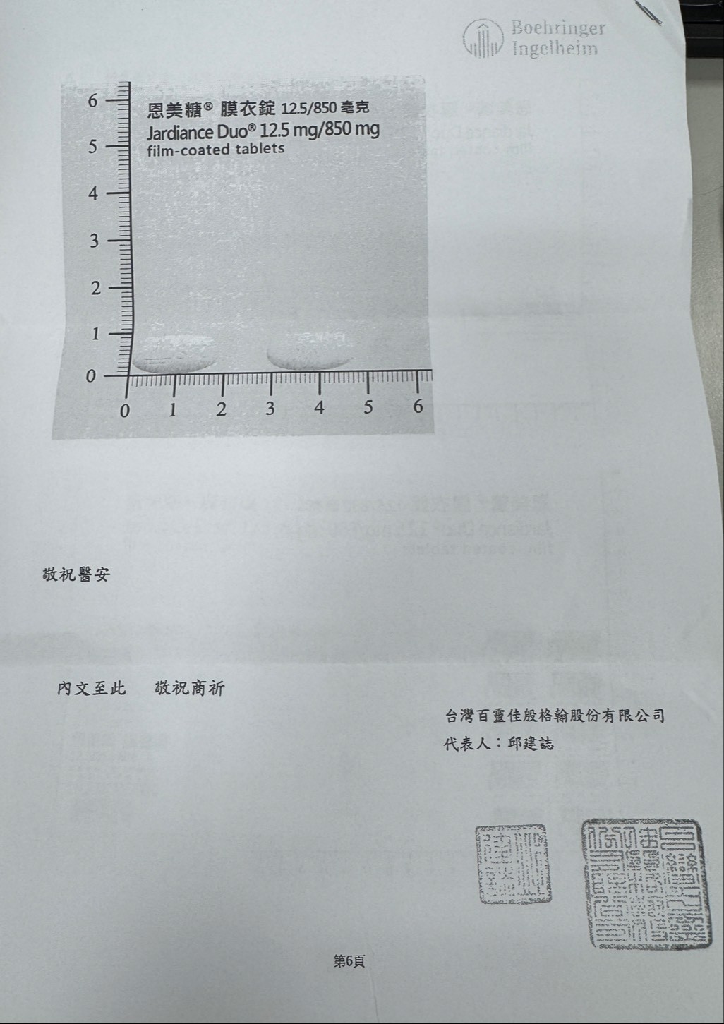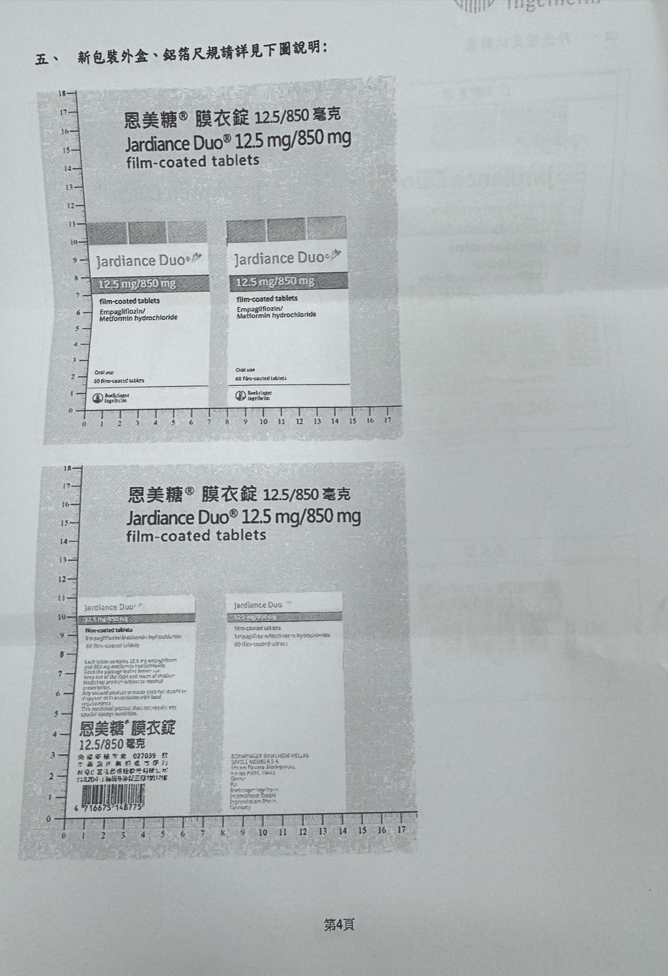 【包裝外觀變更公告】恩美糖膜衣錠12.5/850MG 仿單/鋁箔/外盒變更