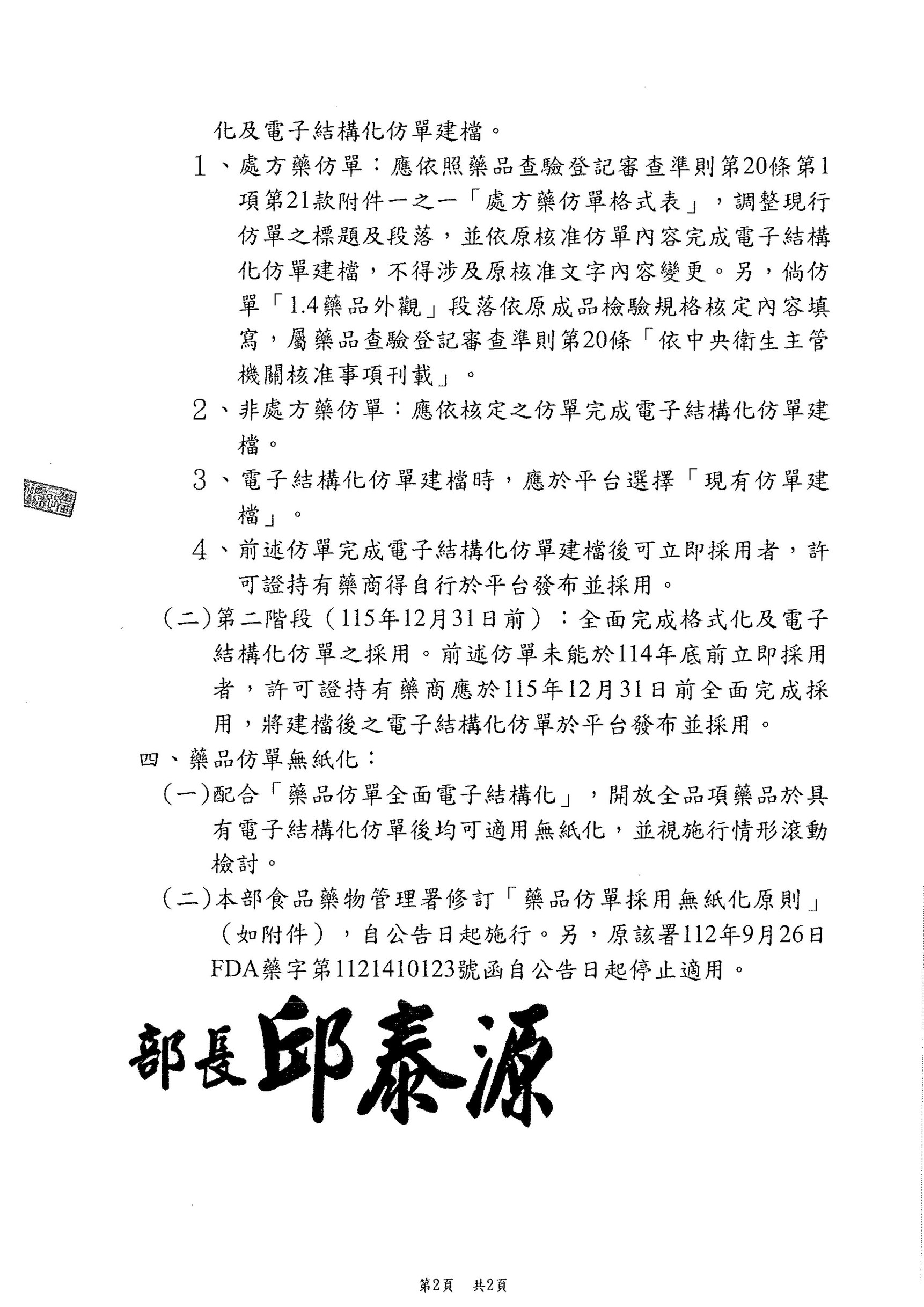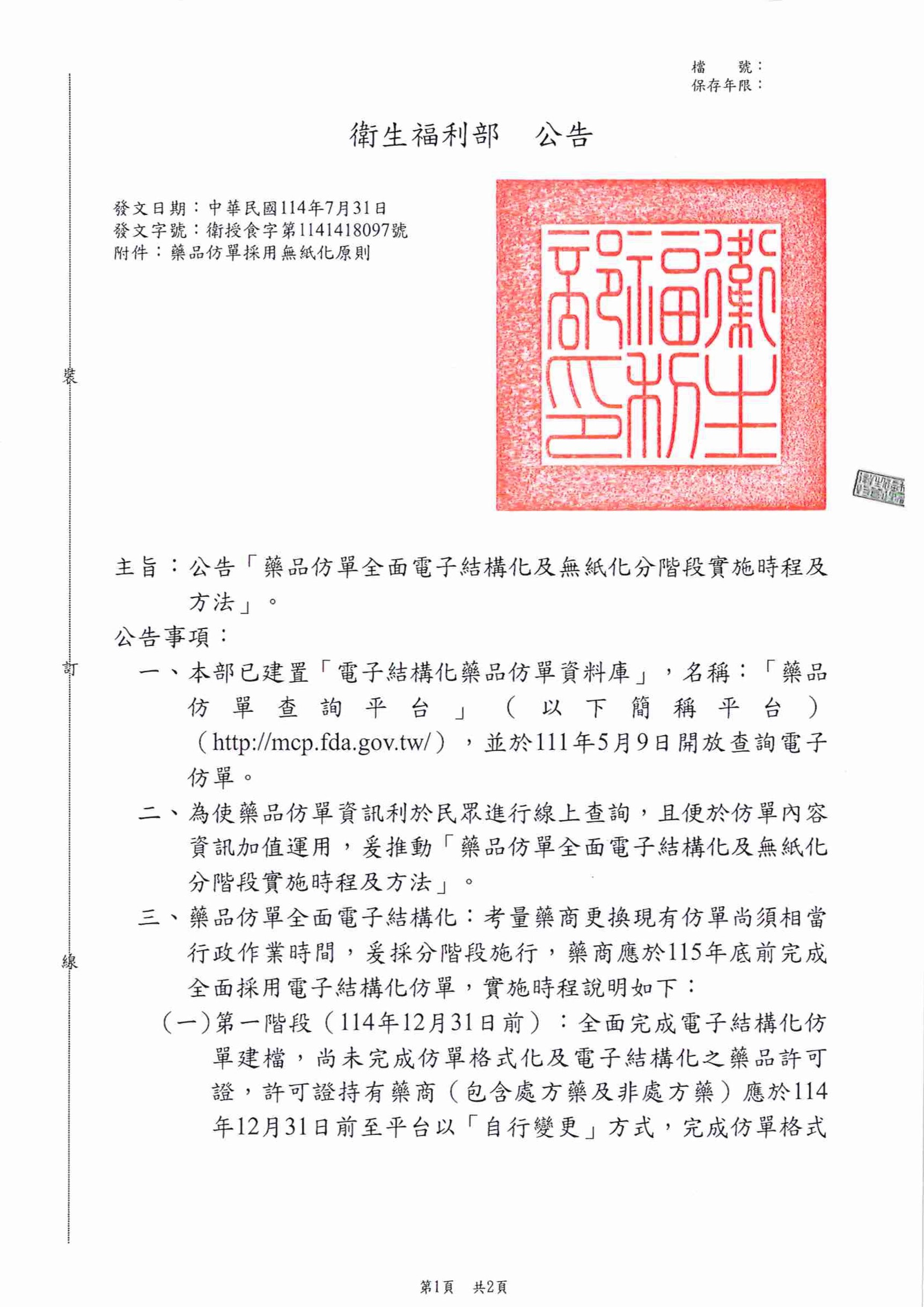 【政府公告】藥品仿單全面電子結構化及無紙化分階段實施時程及方法
